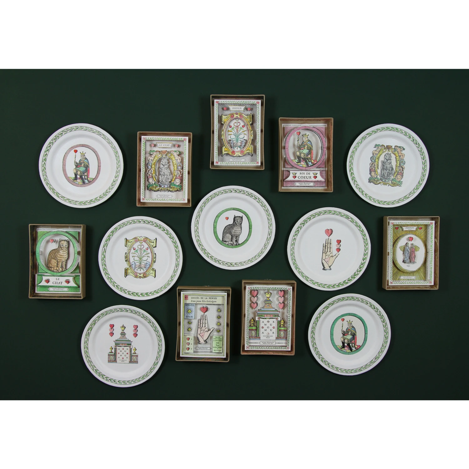 Inspiré par cette tradition, Marin Montagut a imaginé une série d’assiettes décoratives murales confectionnée à la main en papier mâché à Paris. La collection est réalisée et peinte à l’aquarelle à la main dans les ateliers de Marin Montagut à Montmartre. Elle est idéale pour décorer vos murs de pièces rares et délicates.