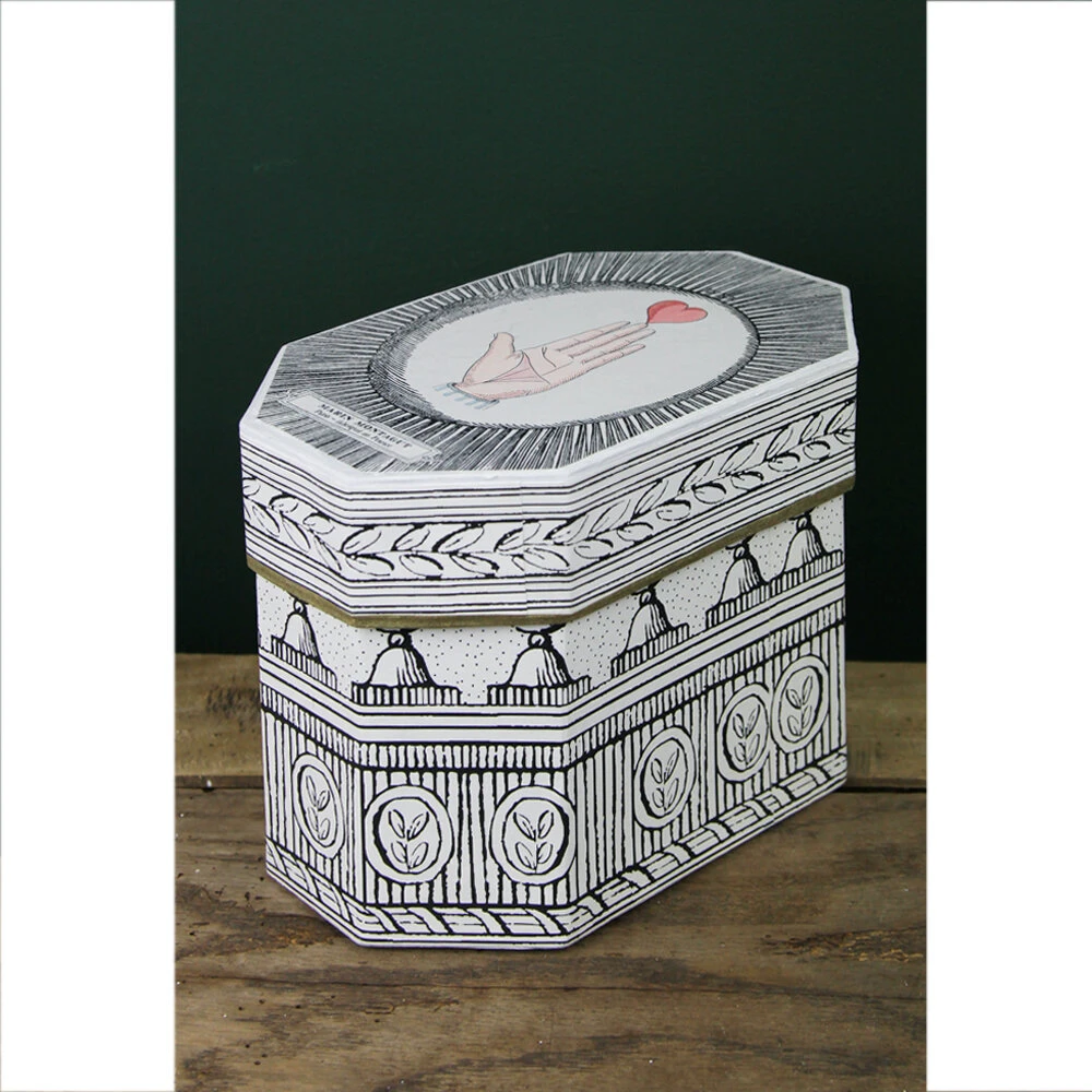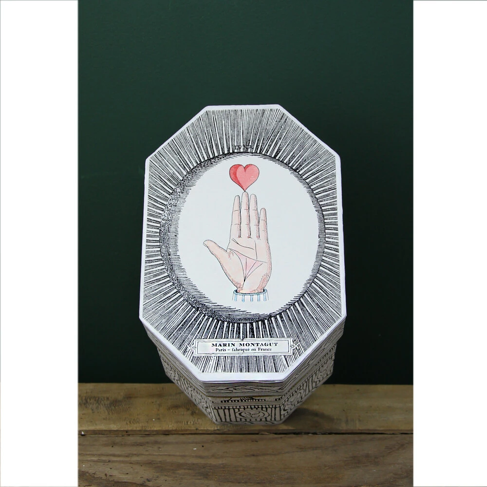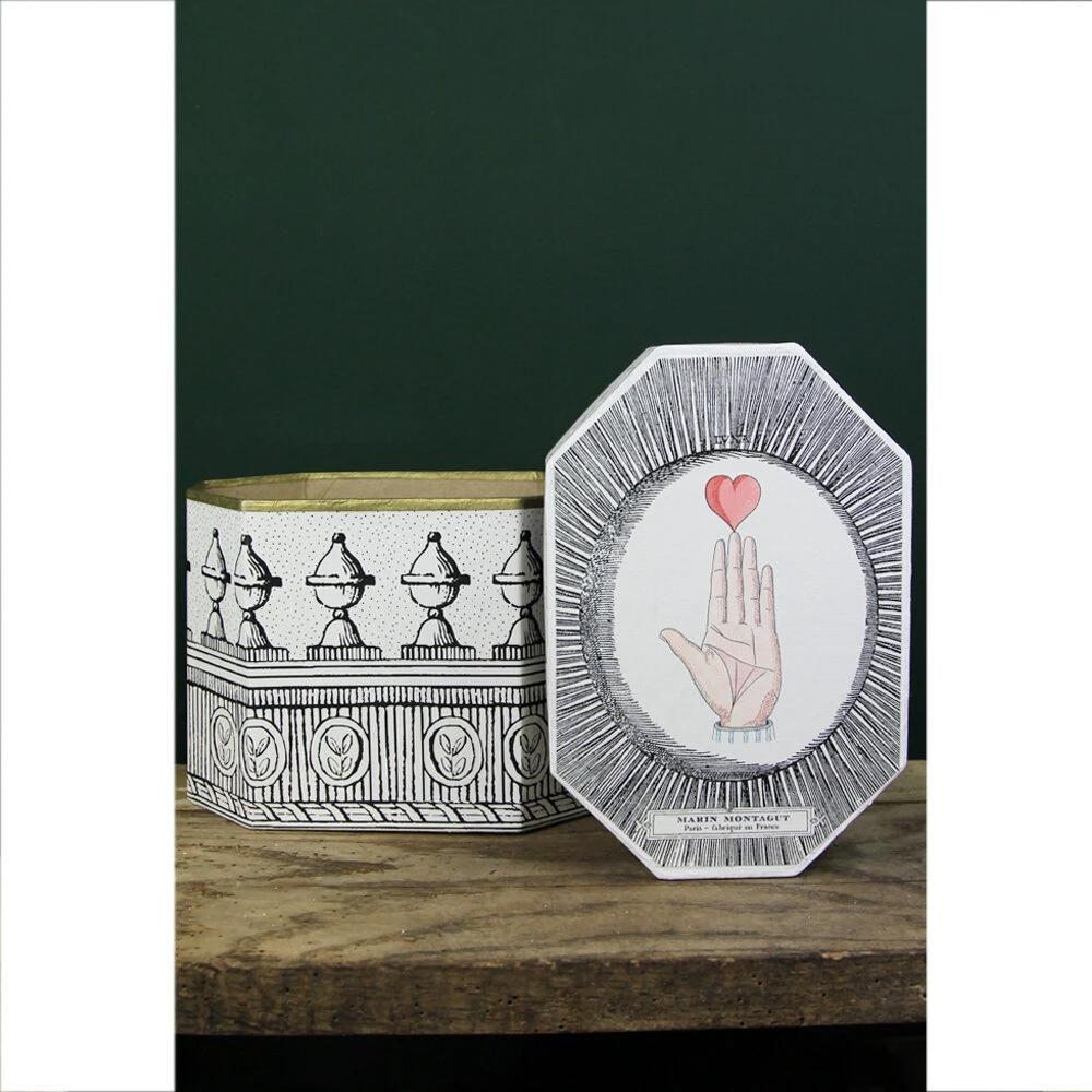 Inspiré par cette tradition, Marin Montagut a imaginé une série de boîtes confectionnés à la main en papier mâché à Paris. La collection est réalisée et peinte à l’aquarelle à la main dans les ateliers de Marin Montagut à Montmartre. Elle est idéale pour y garder tous vos petits trésors.