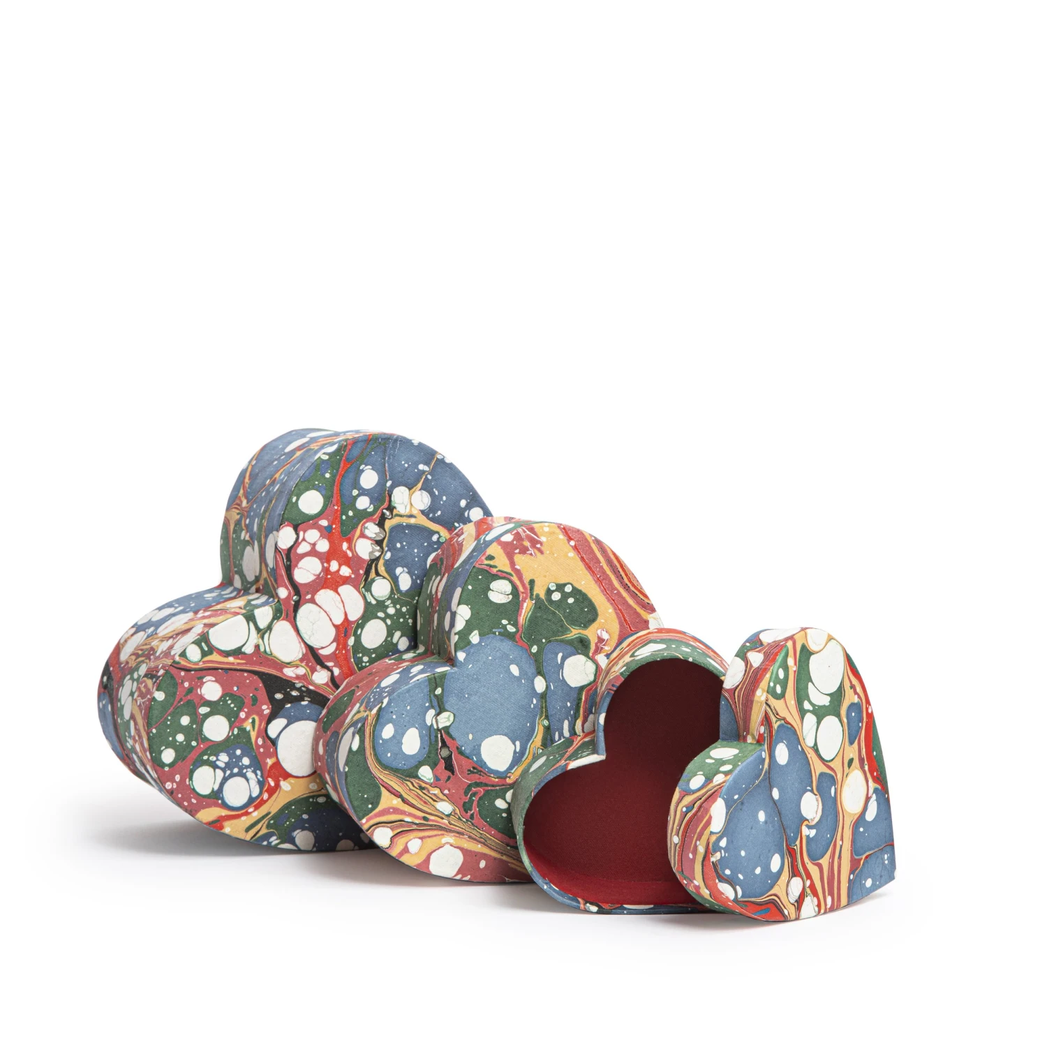 Le papier est marbré artisanalement à la cuve tel qu’on le faisait au 18 ème siècle pour les pages de garde des livres.