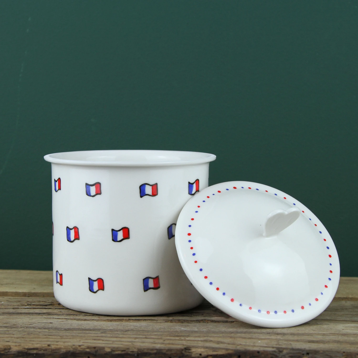 Marin Montagut a imaginé cette nouvelle collection de bonbonnières pour rappeler la vaisselle française d’antan. Toutes ces pièces sont confectionnées à la main en porcelaine émaillée. Chaque bonbonnière est unique et peinte à la main dans les ateliers de Marin Montagut à Paris.