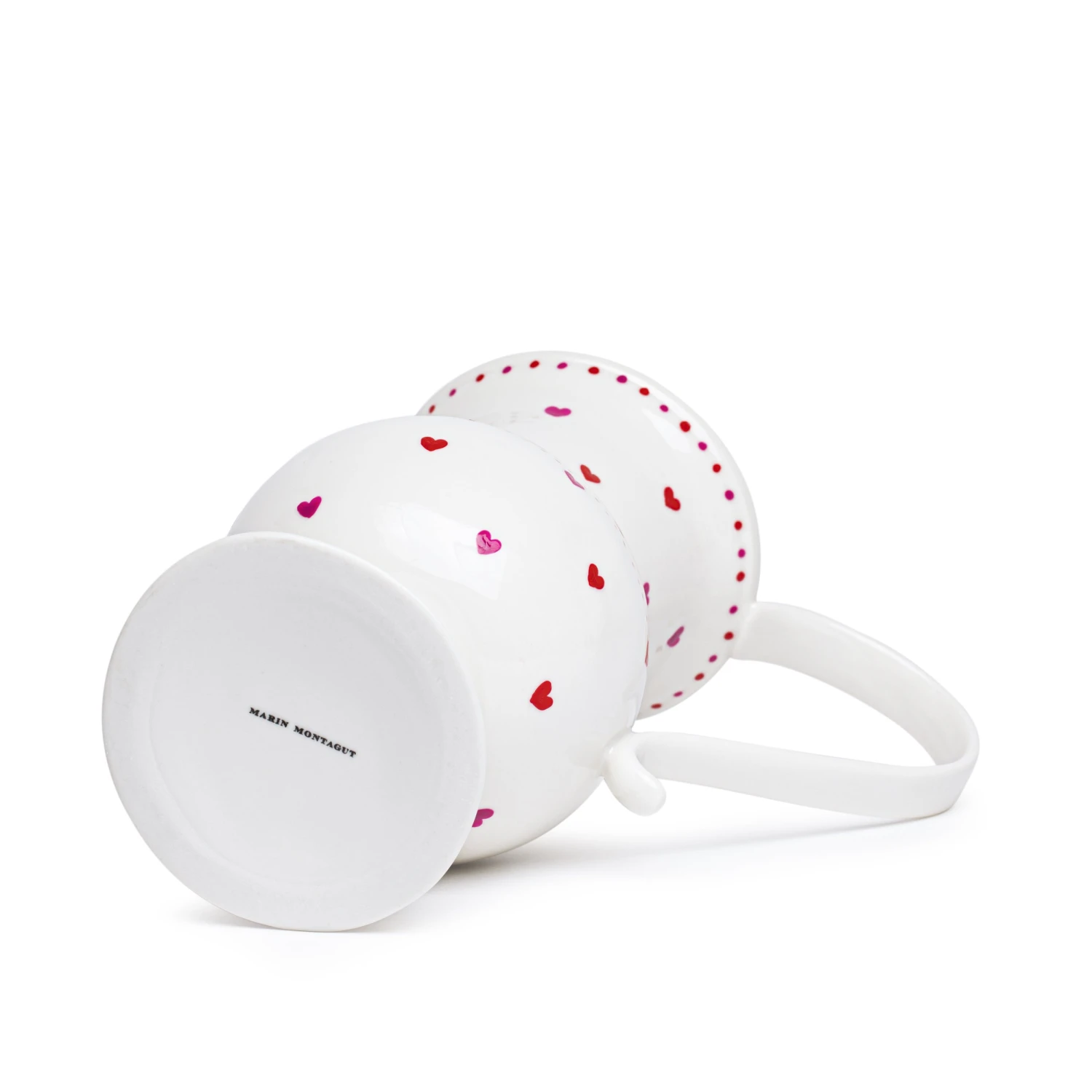 Parsemée de petits coeurs rouges, cette carafe est inspirée d’un modèle du 18ème siècle, lui-même inspiré d’une amphore antique. Cette carafe, pouvant également être utilisée en tant que vase, est peinte à la main dans les ateliers de Marin Montagut.
