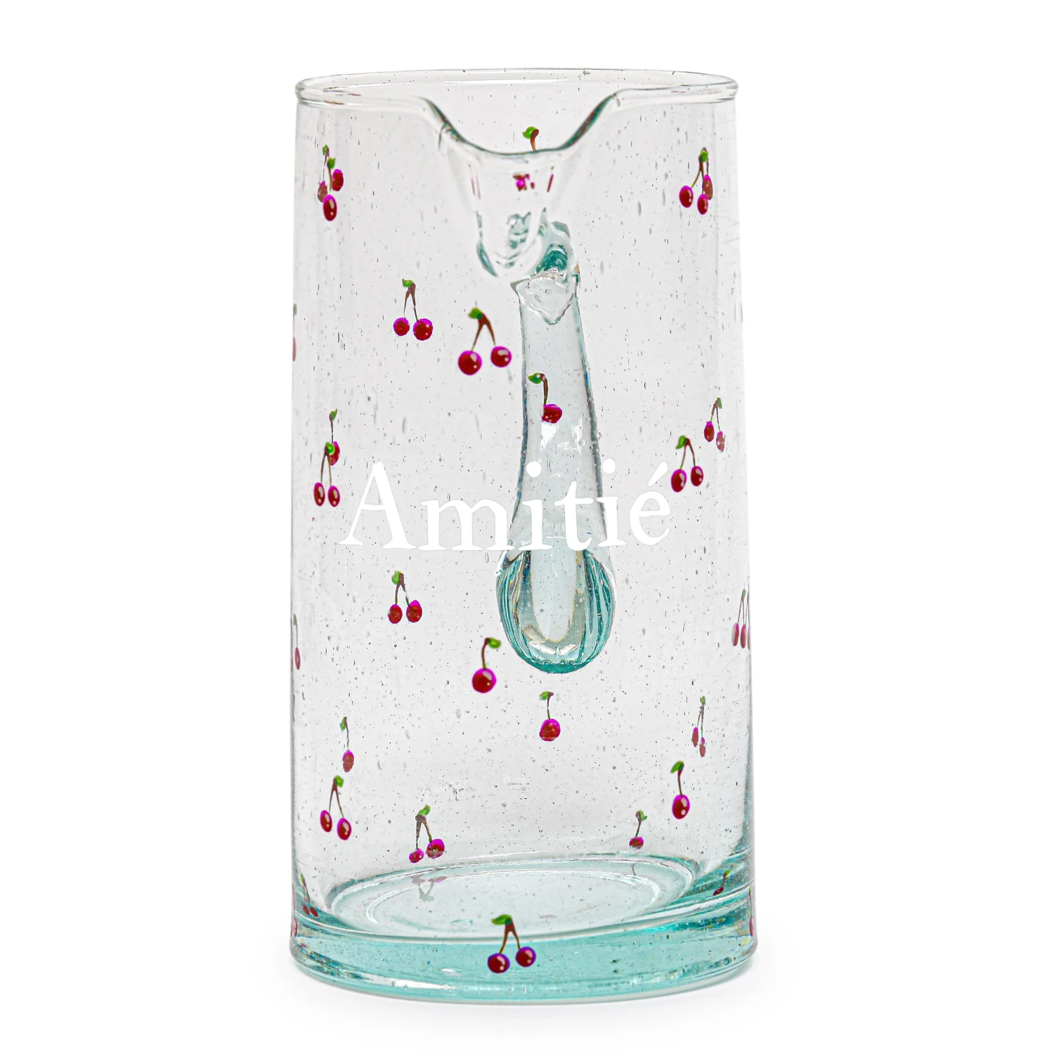 Notre carafe entièrement peinte à la main est illustrée de petites cerises délicates et du mot “Amitié”. Elle est le partenaire idéal pour dresser des tables champêtres et colorées. Limonade ou orangeade… à vous de choisir !