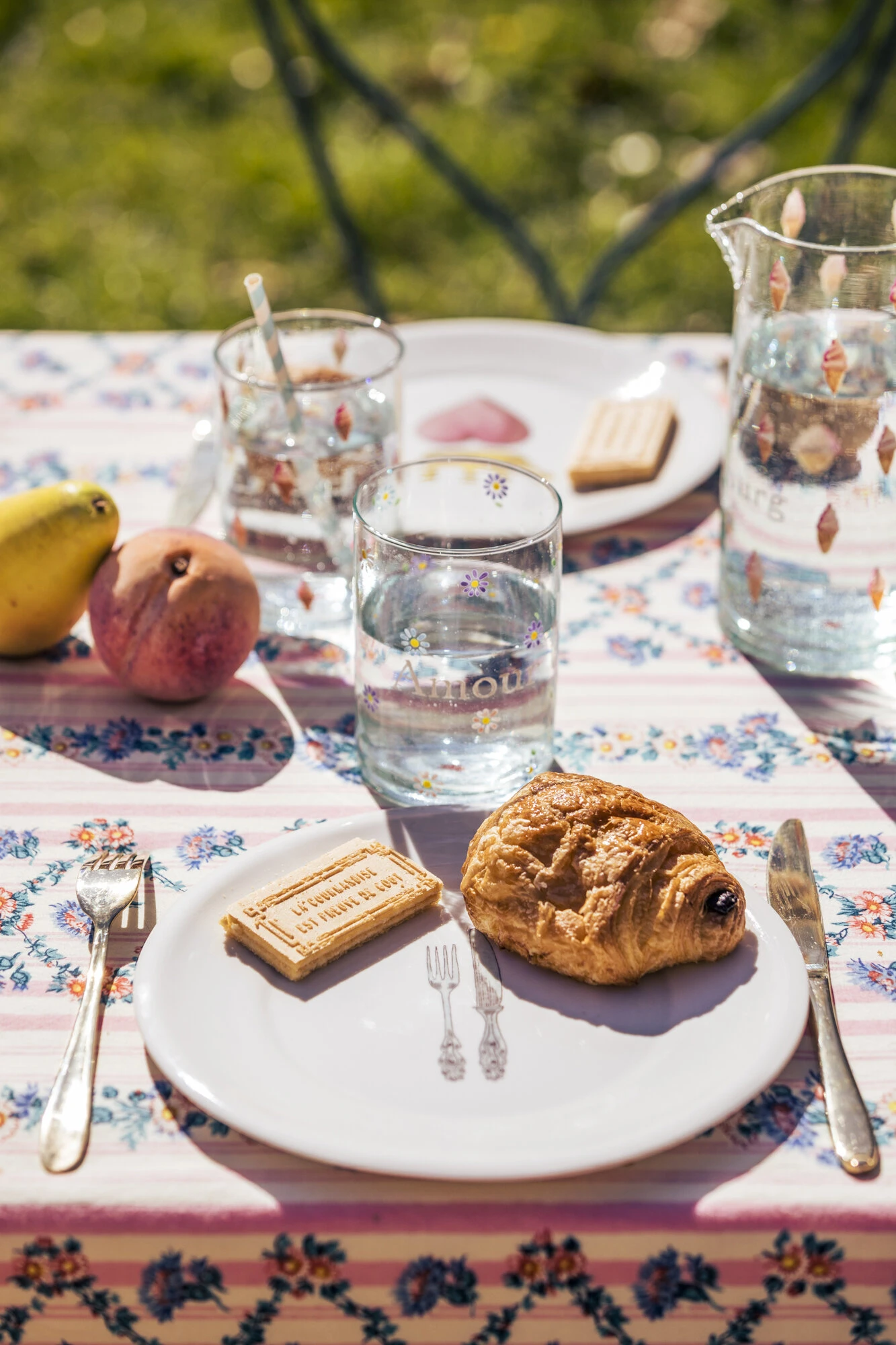 Notre carafe entièrement peinte à la main est illustrée de petites marguerites et du mot “Amour”. Elle est le partenaire idéal pour dresser des tables champêtres et colorées. Limonade ou orangeade… à vous de choisir !