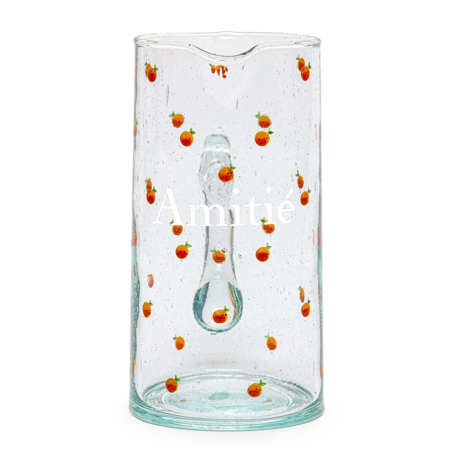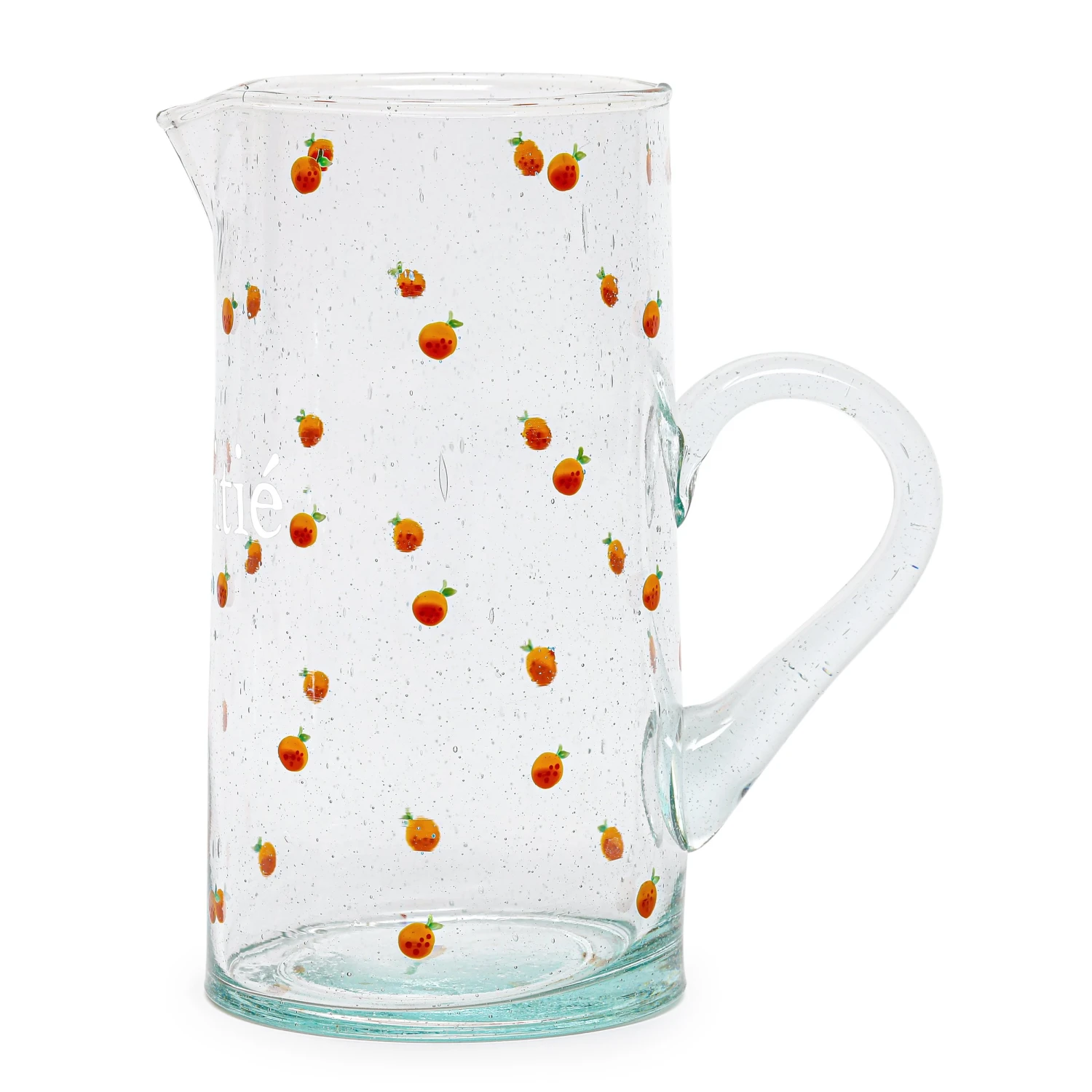 Notre carafe entièrement peinte à la main est illustrée de petites oranges délicates et du mot “Amitié”. Elle est le partenaire idéal pour dresser des tables champêtres et colorées. Limonade ou orangeade… à vous de choisir !
