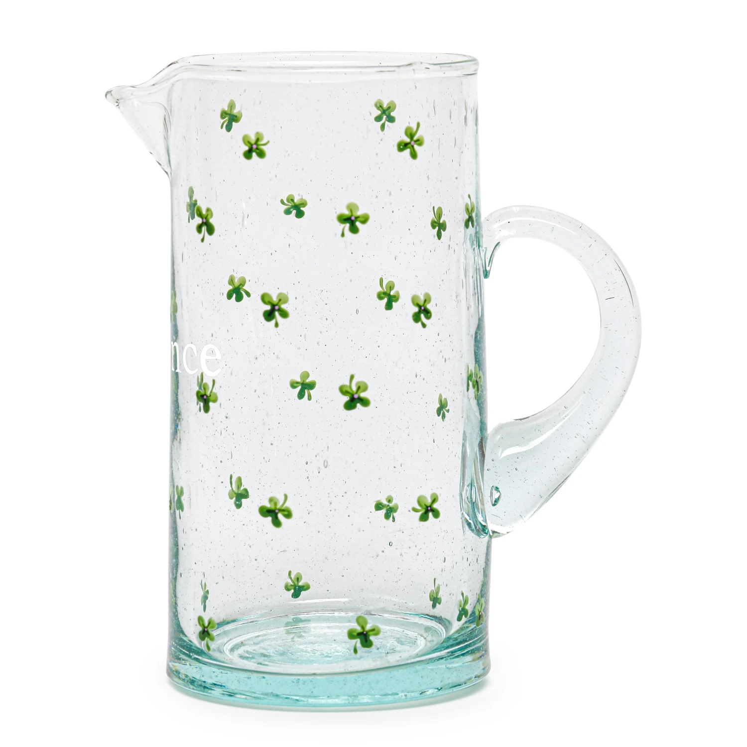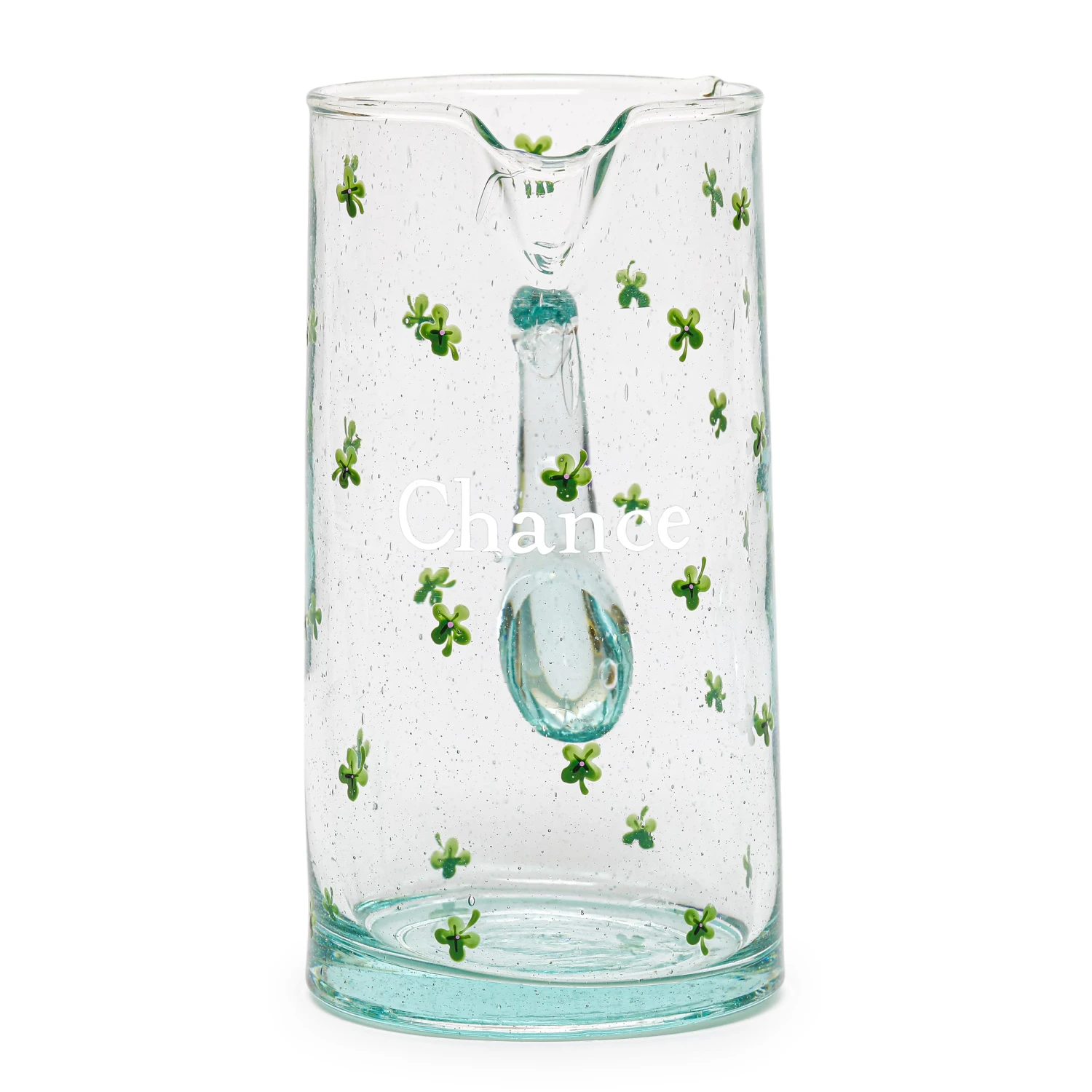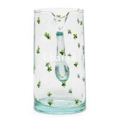 Notre carafe entièrement peinte à la main est illustrée de petits trèfles à quatre feuilles et du mot “Chance”. Elle est le partenaire idéal pour dresser des tables champêtres et colorées. Limonade ou orangeade… à vous de choisir !