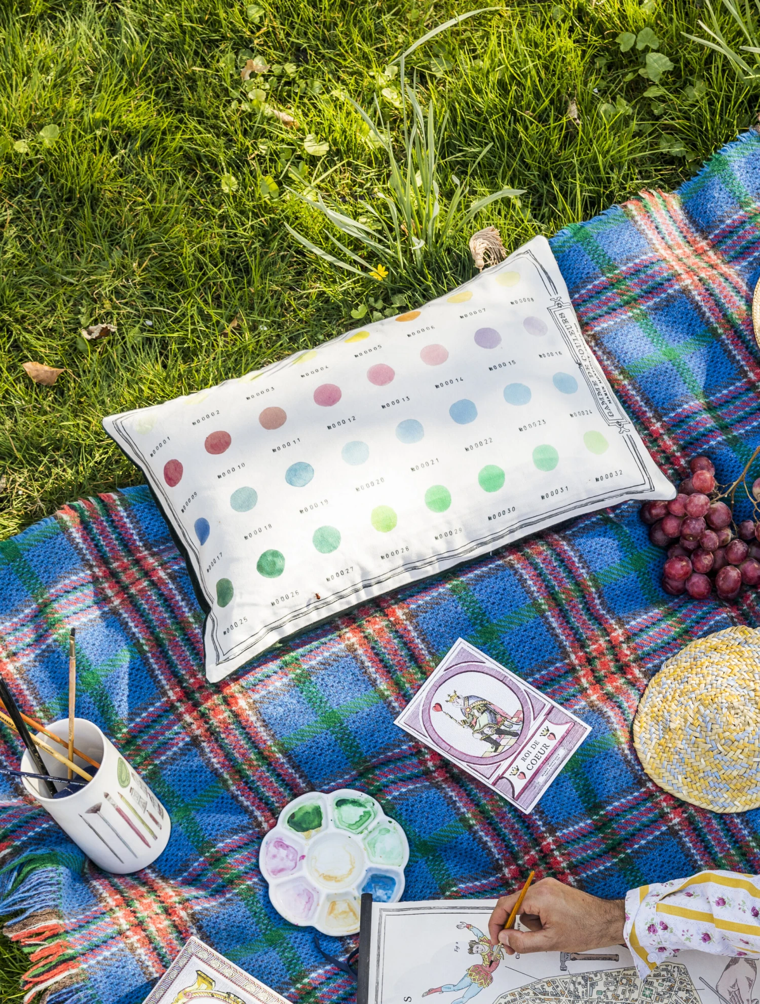 Faites vos gammes en couleur en contemplant GAMME DE COULEURS, un nuancier inspiré par la palette d’aquarelles qu’utilise Marin Montagut pour nous enchanter avec ses illustrations. Elle est déclinée ici en coussin fait de lin et de coton.