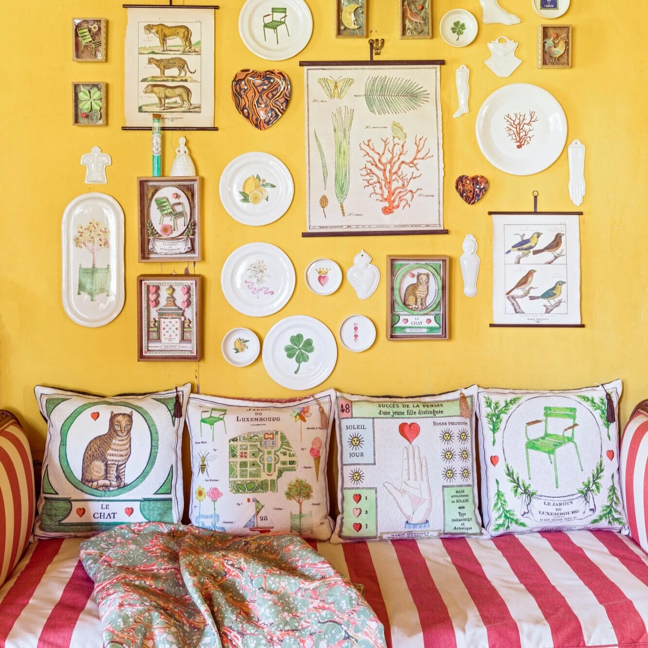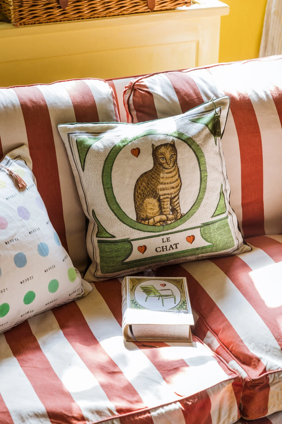 Ôde au maître de nos coeurs et de nos chaumières, LE CHAT est dédié aux amoureux de ces petits félins. L’illustration créée par Marin Montagut est déclinée ici sous la forme d’un coussin de lin et coton.