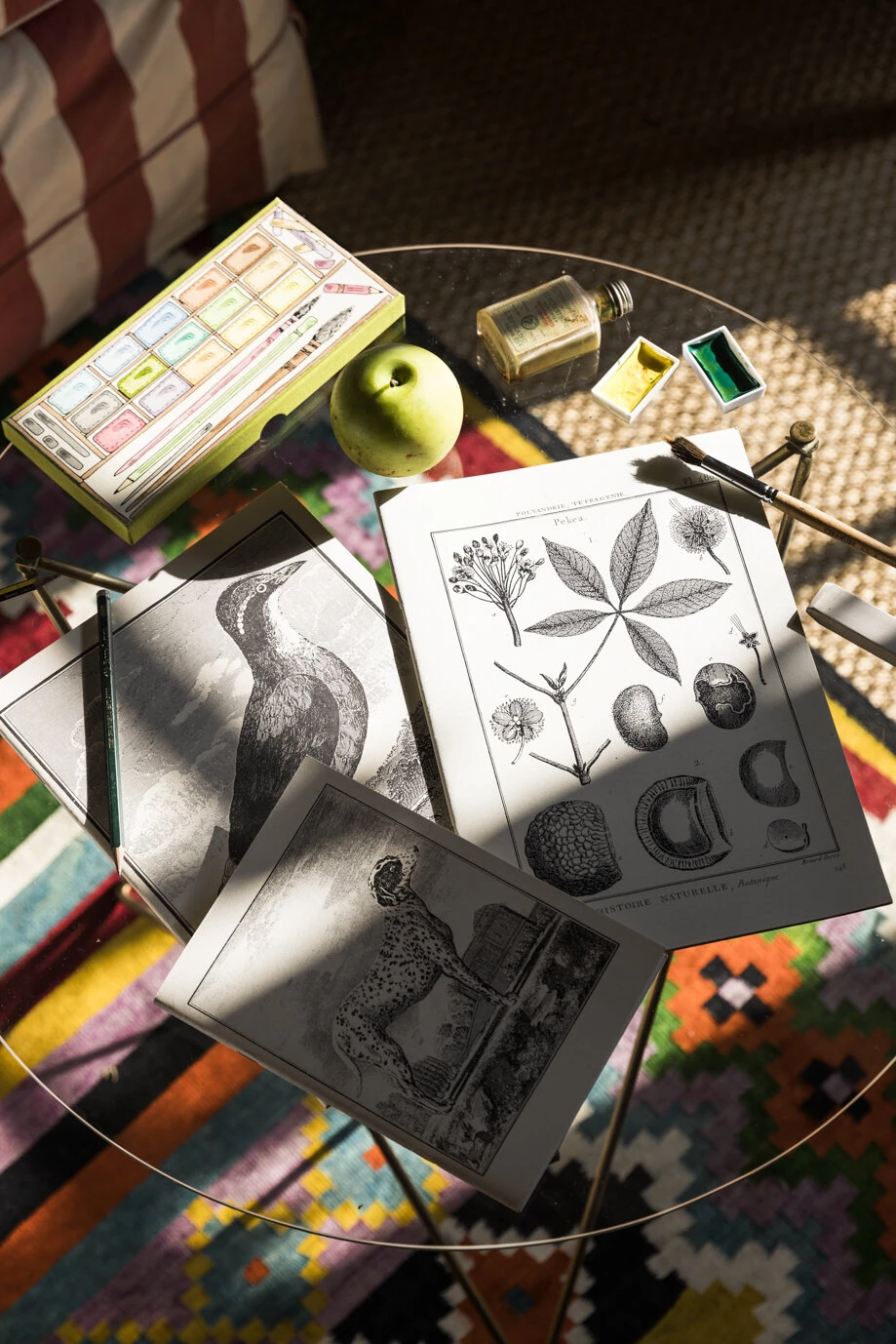 Couchez vos idées écrites ou visuelles dans ce carnet aux pages blanches et à la couverture illustrée par des gravures anciennes du XVIIIème siècle. Ce carnet à croquis ou de note est imprimé en noir sur blanc en quadrichromie, vous donnant la possibilité de colorier vous-même sa couverture aux crayons de couleurs ou à l’aquarelle, comme avec notre Coffret d’Aquarelles.