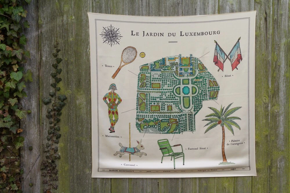 Créé en 1612 à la demande de Marie de Médicis, le JARDIN DU LUXEMBOURG est l’un des rendez-vous printanier des amoureux de Paris. Marin Montagut le croque en vue aérienne et accompagné de ses accessoires les plus illustres, tels que ses palmiers et ses chaises vertes emblématiques.