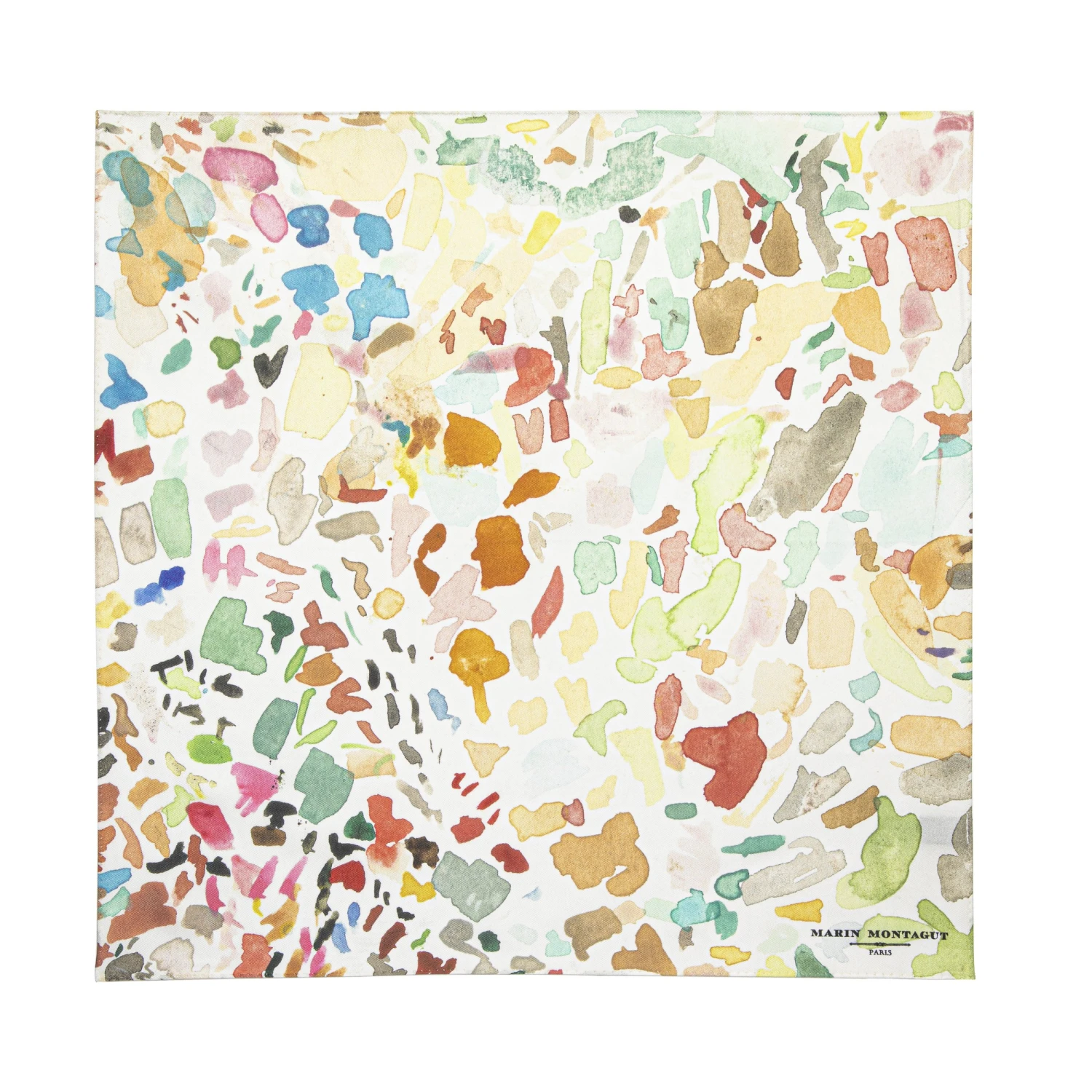 Illustration exclusive aux carrés de soie, “PALETTE” nous enivre de ses couleurs dansant joyeusement ensemble. Inspiré par la palette d’aquarelles qu’utilise Marin Montagut pour nous enchanter avec ses illustrations, ce carré de soie coloré est délicatement confectionné par une manufacture familiale à Lyon en France. Il existe en deux tailles différentes, les deux permettant au foulard d’être porté autour du cou.