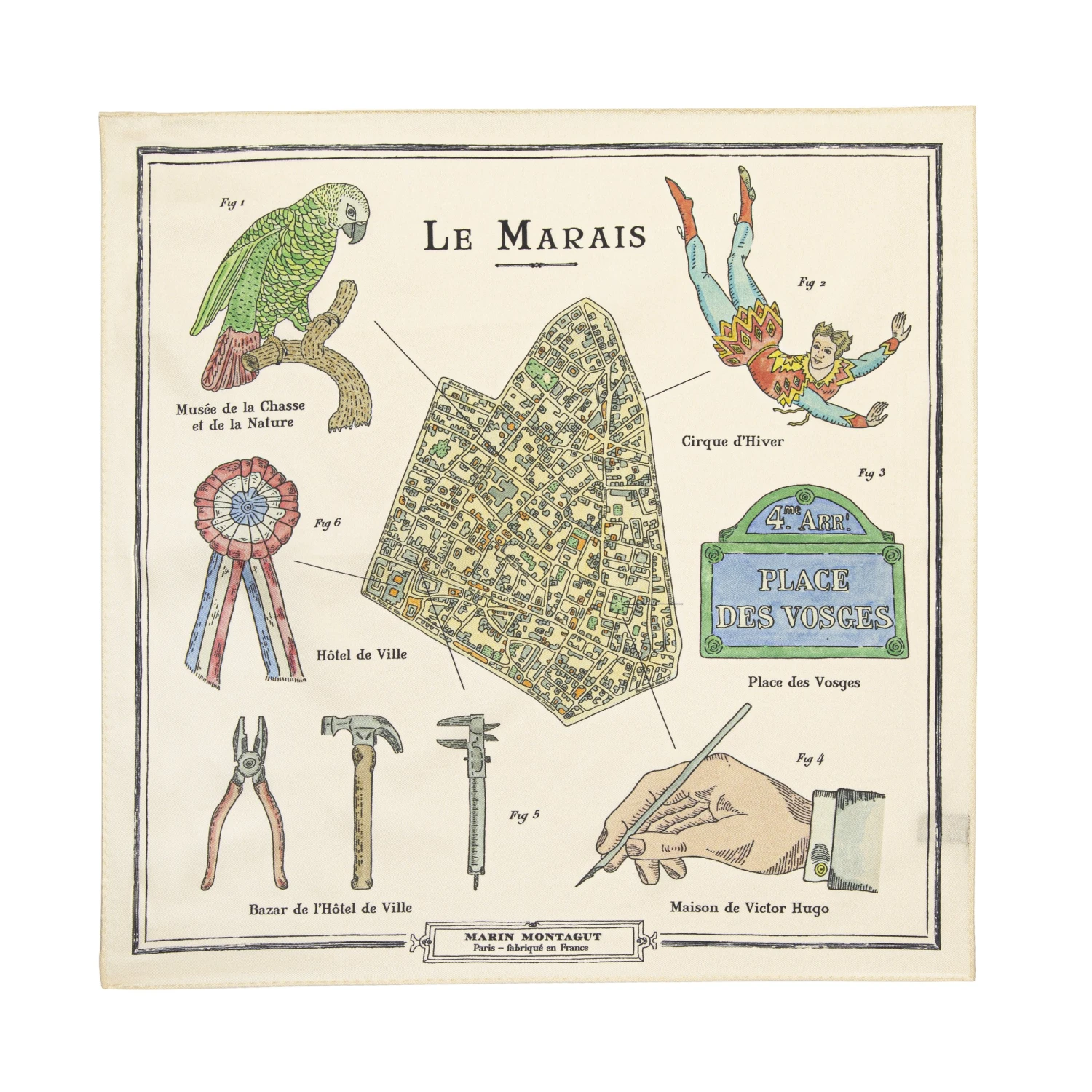 L’illustration à l’aquarelle LE MARAIS est déclinée ici en carré de soie, délicatement confectionné par une manufacture familiale à Lyon en France. Il existe en deux tailles différentes, les deux permettant au foulard d’être porté autour du cou.
