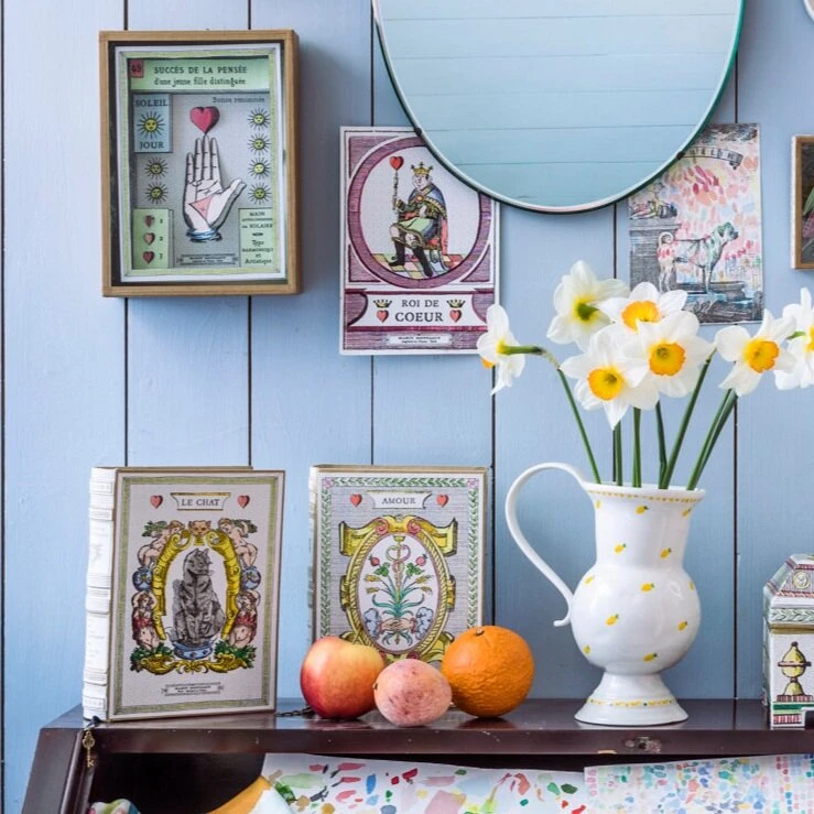 Inspirée de cette tradition, la collection “Livres À Secrets” créée en papier mâché est entièrement confectionnée, peinte et numérotée à la main dans les ateliers de Marin Montagut à Paris. L’intérieur est revêtu d’un papier marbré de reliure imprimé à la main en France et contient un ruban avec à son bout un colifichet en métal en forme de clé.