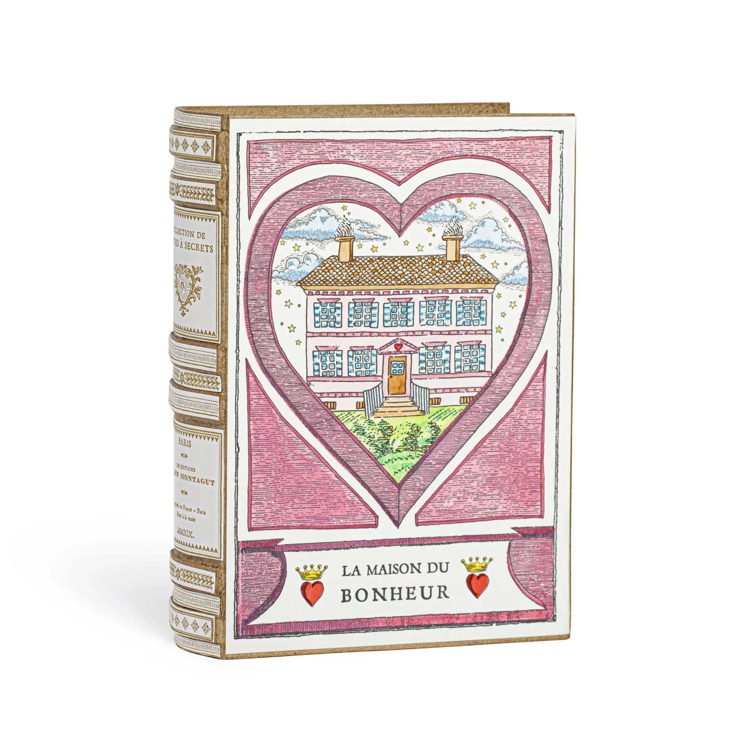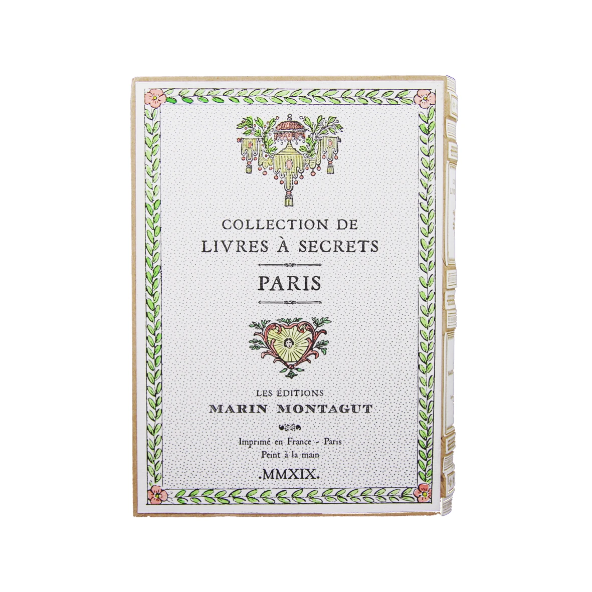 Inspirée de cette tradition, la collection “Livres À Secrets” créée en papier mâché est entièrement confectionnée, peinte et numérotée à la main dans les ateliers de Marin Montagut à Paris. L’intérieur est revêtu d’un papier marbré de reliure imprimé à la main en France et contient un ruban avec à son bout un colifichet en métal en forme de clé.