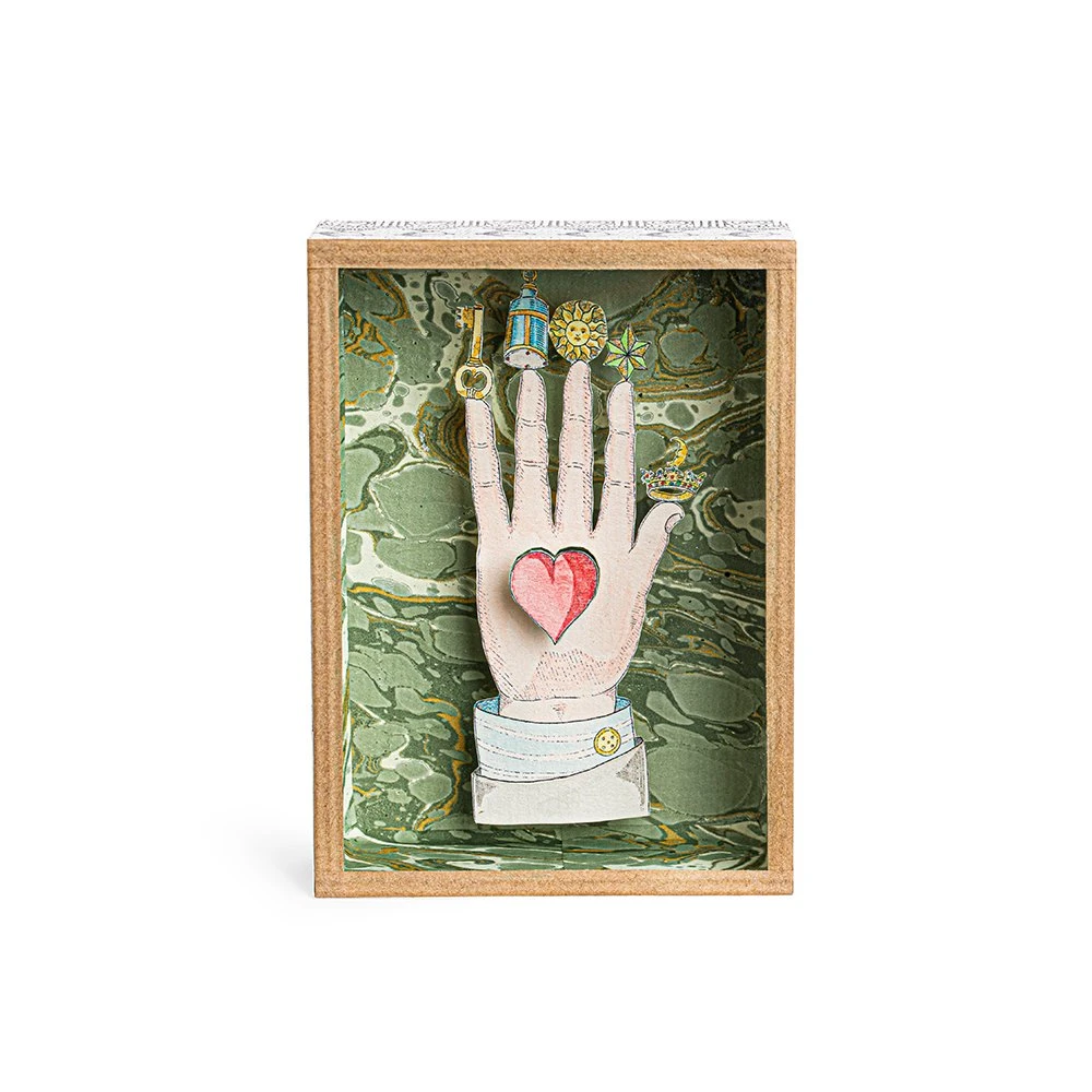La petite Vitrine À Merveilles est un objet en volume 3D, confectionnée dans les ateliers de Marin Montagut à Paris, entièrement PEINTE ET DÉCOUPÉE À LA MAIN. Chaque pièce est numérotée. La structure est en papier mâché et fermé par une vitre en verre. Un objet précieux à contempler sans modération.