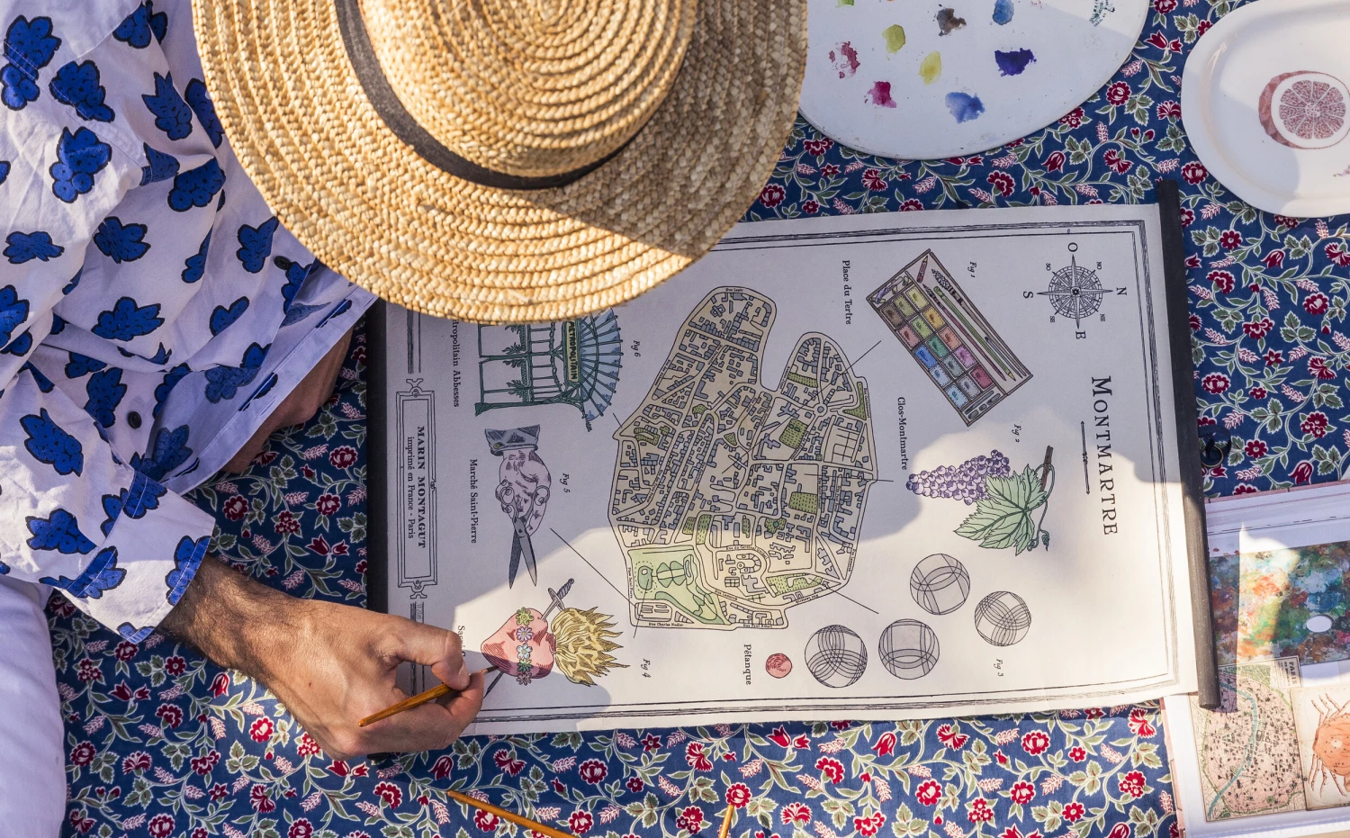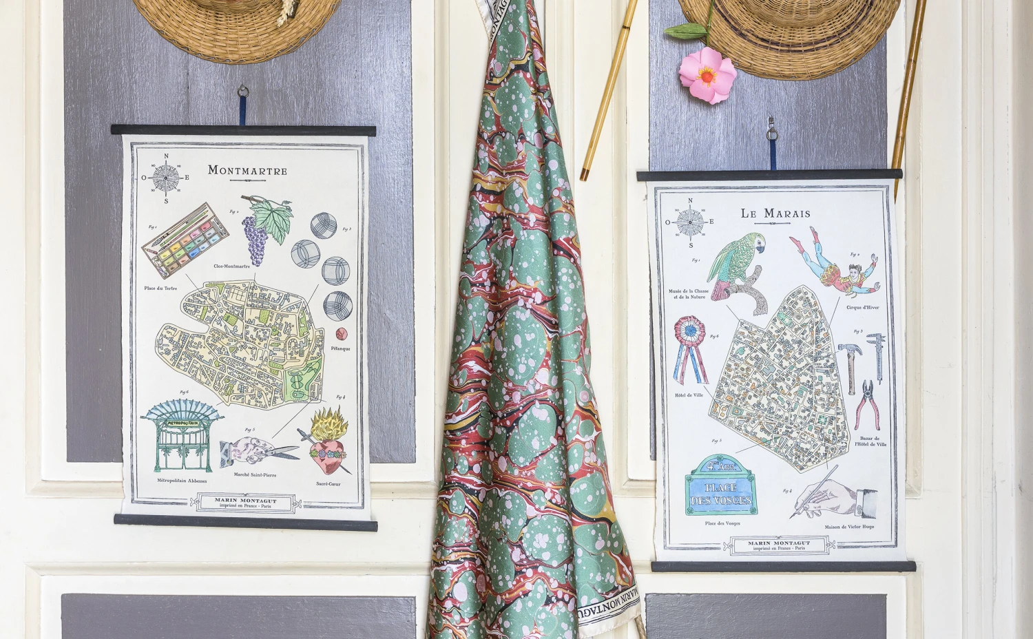Grand amoureux de Paris et de ses ruelles féériques, Marin Montagut a voulu immortaliser de son trait ses trois quartiers de prédilection : Le Marais, Montmartre et Saint Germain des Prés.