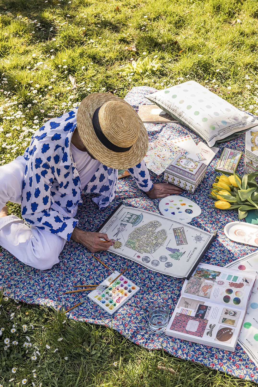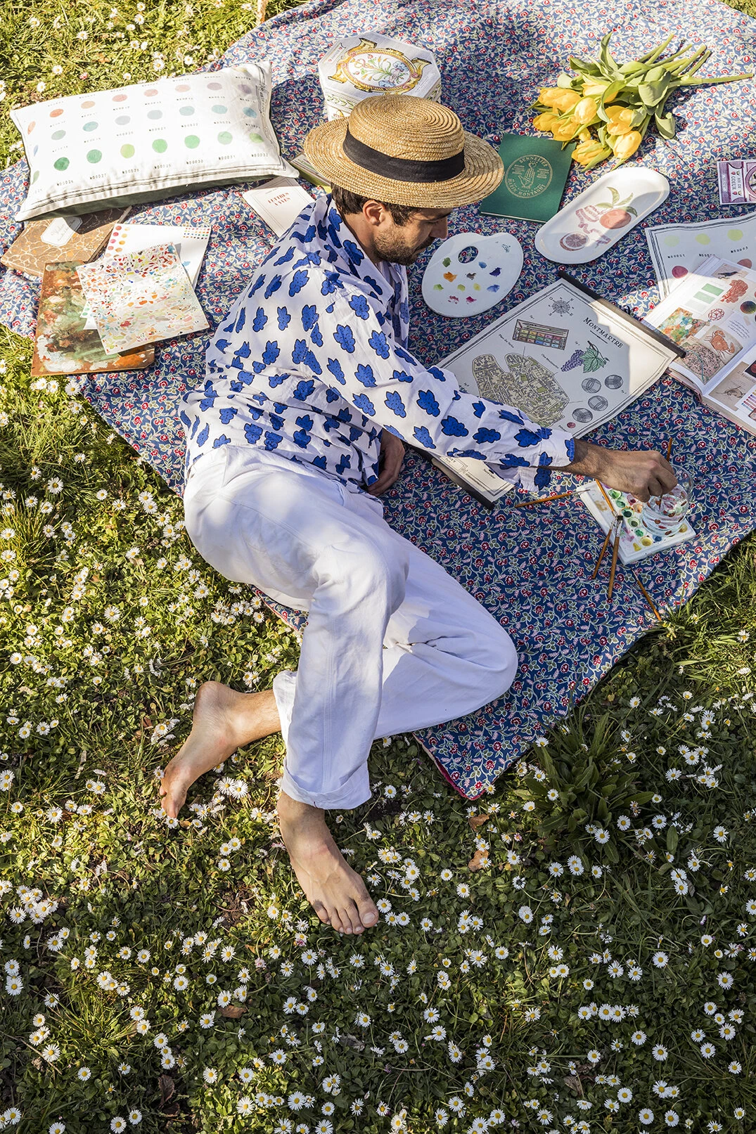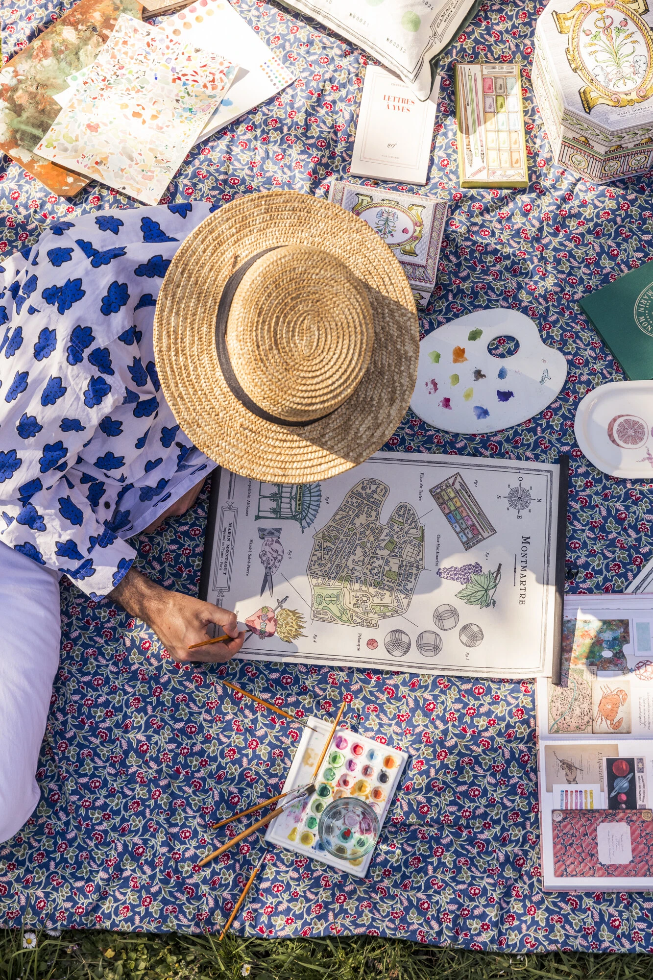 La planche murale décorative MONTMARTRE est imprimée sur presse à Paris, sur un papier chiffon confectionné à la main dans un moulin du sud de la France selon les techniques du 18ème siècle. L’impression est ensuite mise en couleur à l’aquarelle à Montmartre.