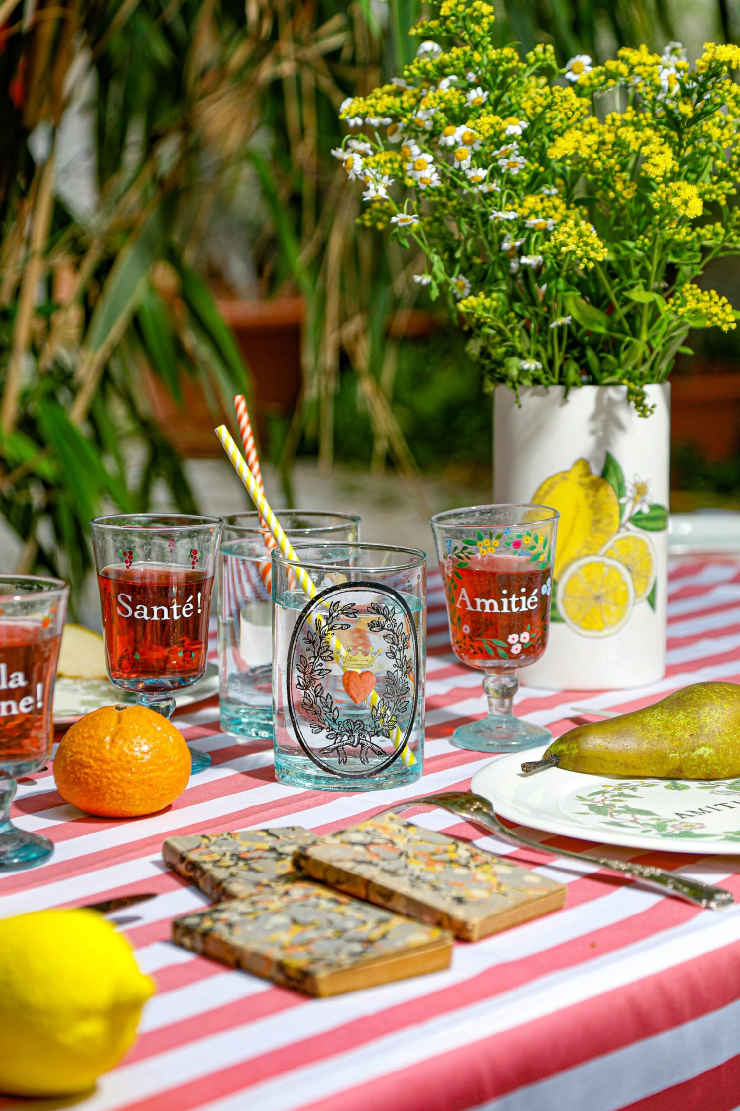 Les illustrations sont apposées dans les ateliers de Marin Montagut à Paris et chaque pièce est cuite sur place.