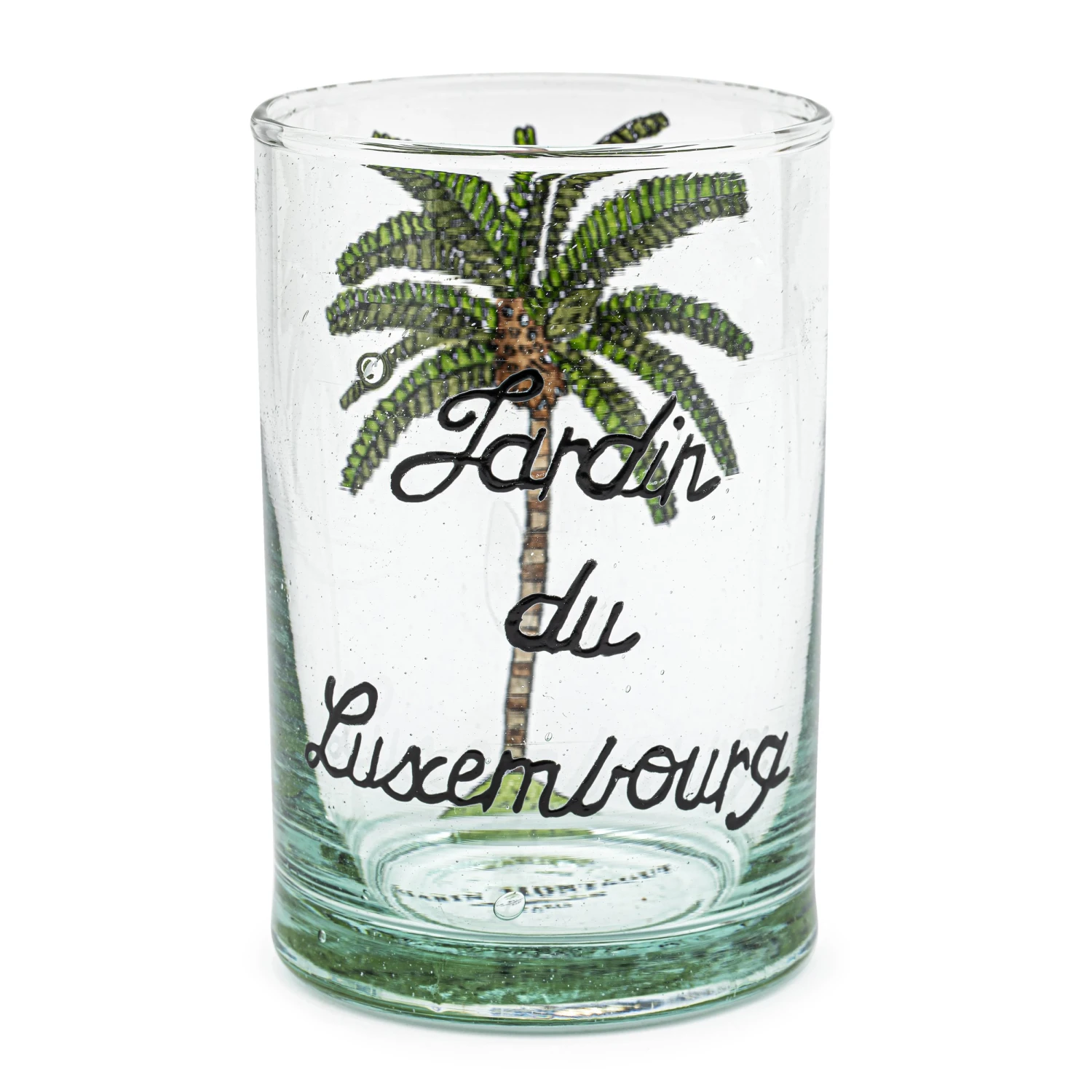 Créé en 1612 à la demande de Marie de Médicis, le Jardin du Luxembourg est l’un des rendez-vous printanier des amoureux de Paris. Marin Montagut le croque par l’un de ses habitants les plus emblématique : son magnifique palmier, le “PALMIER DU LUXEMBOURG”. L’illustration à l’aquarelle est déclinée ici sous la forme d’un beau verre artisanal.