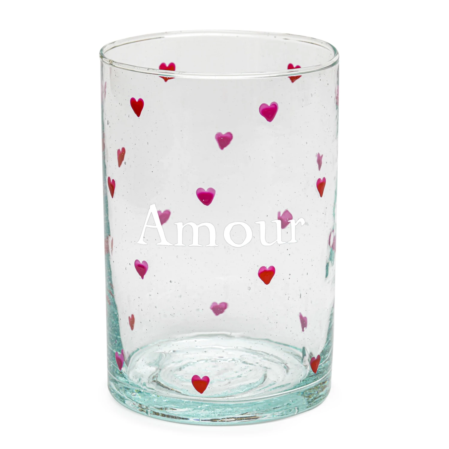 Ce verre délicat entièrement peint à la main est illustré de petits coeurs et du mot “Amour”. Son utilité est multiple : verre à boire, mini vase pour des petits bouquets ou pot à crayons…laissez votre imagination vous guider !