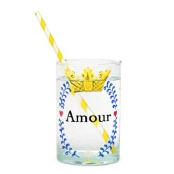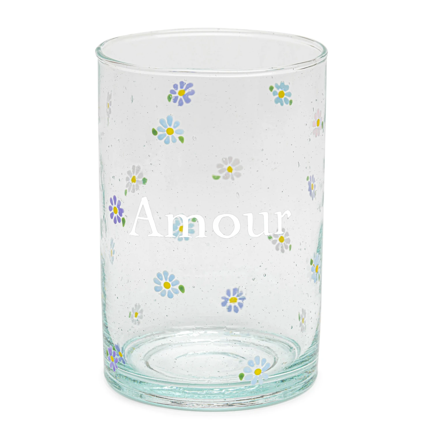 Ce verre délicat entièrement peint à la main est illustré de petites marguerites et du mot “Amour”. Son utilité est multiple : verre à boire, mini vase pour des petits bouquets ou pot à crayons…laissez votre imagination vous guider !