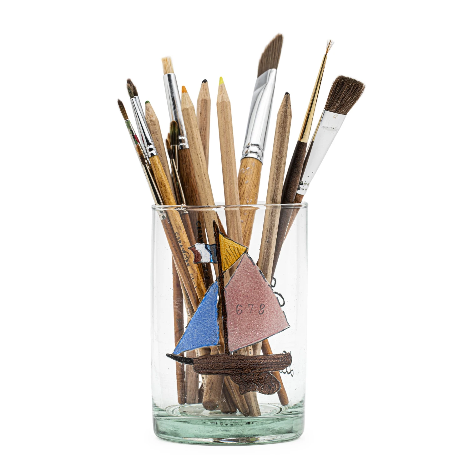 Marin Montagut travaille chacun de ses modèles d’art de la table en s’inspirant de la vaisselle française d’antan. Le verre d’une rare finesse est soufflé à la bouche et peint à la main. Chaque pièce est ainsi un modèle unique. L’utilité de ce modèle est multiple : verre à boire, mini vase, pot à crayons…laissez votre imagination vous guider !