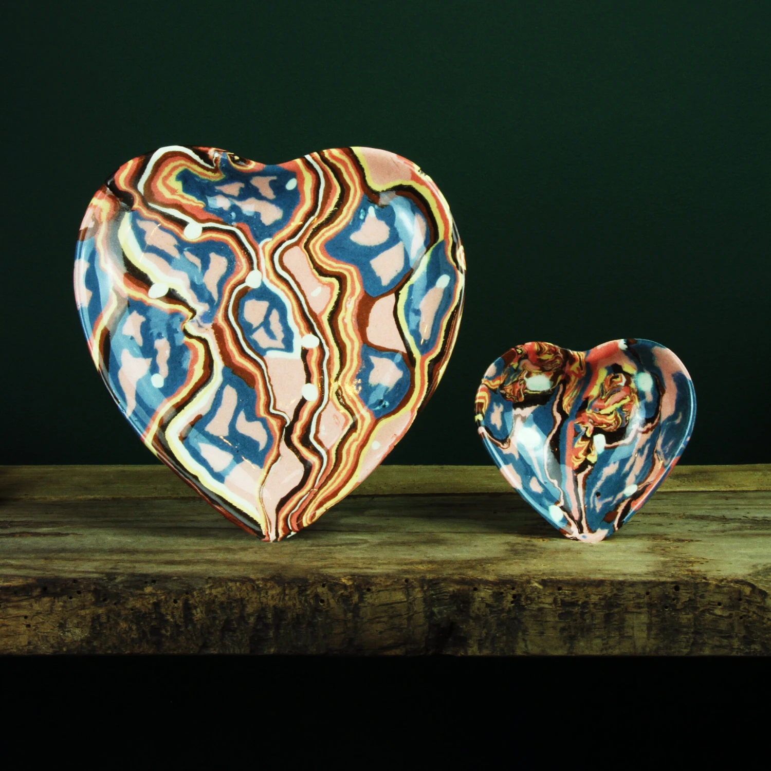 Ce joli COEUR MARBRÉ en terres mêlées marbrées a été créé grâce à un savoir-faire rare et précieux issue d’une tradition du Sud de la France datant du XVIII siècle. Il est entièrement faits à la main dans le Sud de la France en faïence d’Apt. Chaque pièce est unique puisque façonnée à la main suivant une méthode traditionnelle. Il est idéal pour exposer sur votre mur ou pour y déposer vos objets précieux.