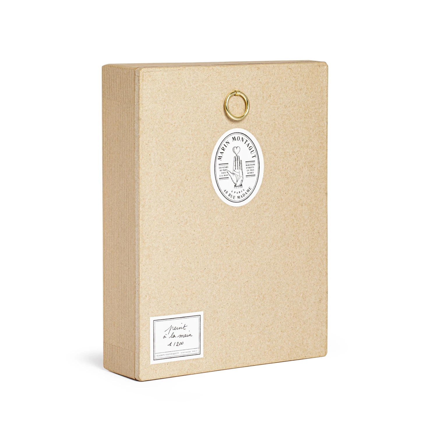 La Vitrine À Merveilles est un objet en volume 3D, confectionnée dans les ateliers de Marin Montagut à Paris, entièrement PEINTE ET DÉCOUPÉE À LA MAIN. Chaque pièce est numérotée. La structure est en papier mâché et fermé par une vitre en verre, le tout conservé par un couvercle de protection, tel un écrin. Un objet précieux à contempler sans modération.